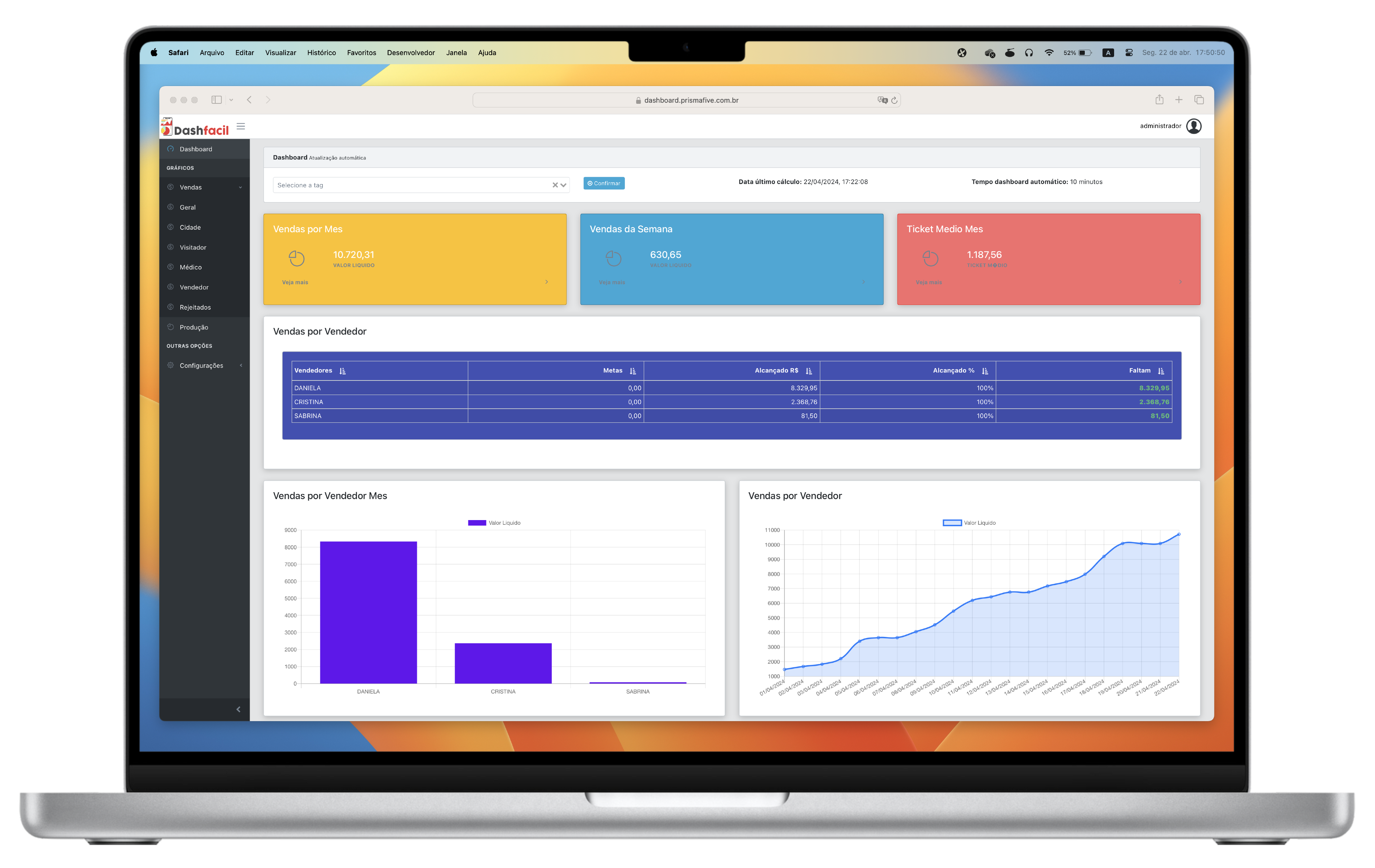 Acompanhe a evolução e o desempenho do seu time de vendas de forma Fácil.
